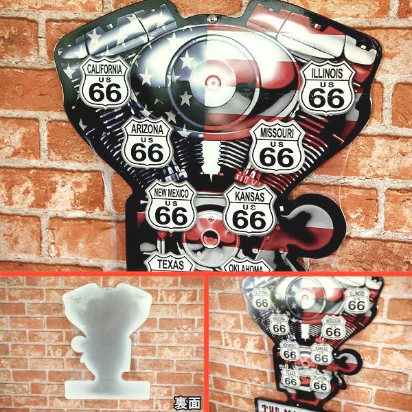 ルート66 標識 ロゴ & 星条旗 V-TWIN エンジン型 プレート ◆ 看板 M-65151