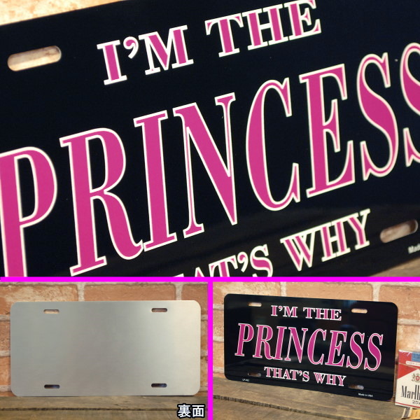 I'M THE PRINCESS LICENSE PLATE☆シックな黒地にピンクの文字がかっこかわいいライセンスプレート!
