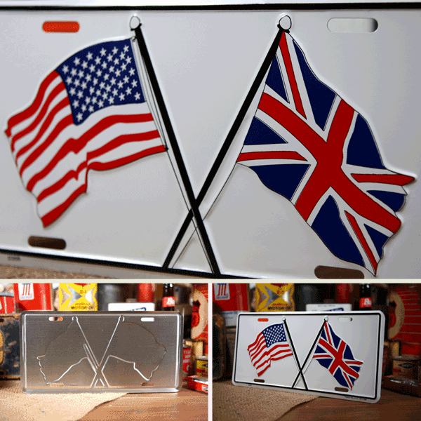 ☆星条旗と英国旗【ユニオンジャック】のライセンスプレートです。ライセンスプレートは飾るだけで、ガレージ、お部屋、ショップなど場所を選ばず、とってもいい雰囲気にしてくれる強力なアイテムです。