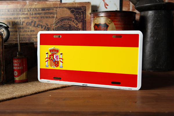 ☆スペイン国旗のライセンスプレートです。 ぜひ、自慢のコレクションに仲間入りさせて下さい!! 国旗って、それだけでカワイイし、お洒落ですよね☆ ※画像は同一商品のサンプルです。 ※取り付け用の穴が開いています。 ※まれにメーカーの急な仕様変更で写真と実物が若干違う部分がある場合がございます。