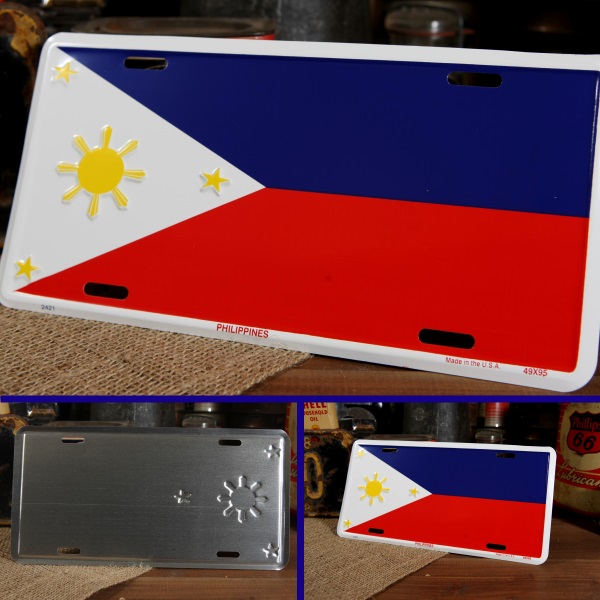 ☆フィリピン国旗のライセンスプレートです。ぜひ、自慢のコレクションに仲間入りさせちゃって下さい!!国旗って、それだけでカワイイし、お洒落ですよね☆