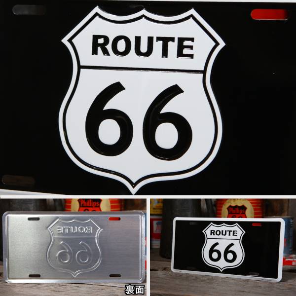 ☆ルート66の道路標識ロゴのライセンスプレートです。 シンプル イズ ベスト! 黒字に白のロゴがとっても映えて、かっこいいです!! ※画像は同一商品のサンプルです。 ※取り付け用の穴が開いています。 ※入荷時より多少のゆがみや小傷がある場合がございます。 ※開封時フィルムパッケージ痕が残る場合がございます。