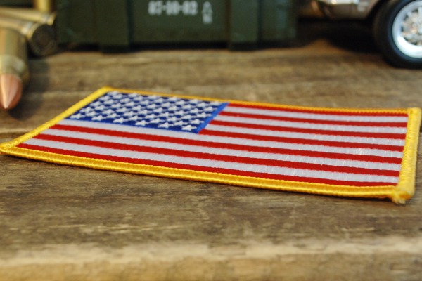 ちょっと大きめ 星条旗 刺繍 ワッペン ◆ アメリカ国旗 黄色枠 HL-PPA1222