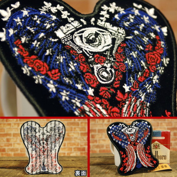 刺繍 ワッペン ◆ 星条旗 ウィング & バイク エンジン