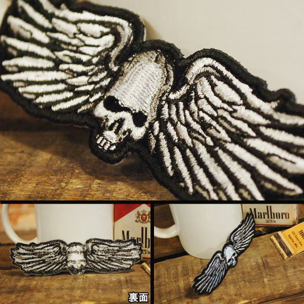 刺繍 ワッペン ◆ 羽の生えた スカル 【S】