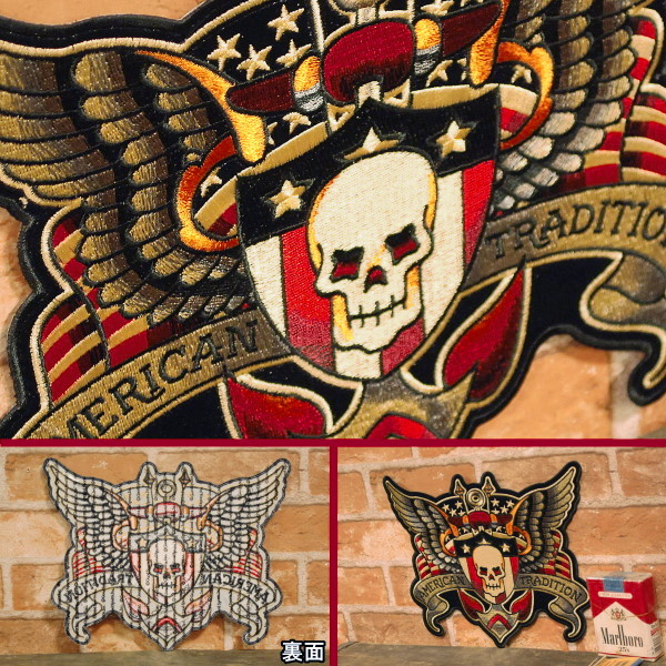 特大 ● 刺繍 ワッペン ◆ アメリカン・トラディション スカル 【L】