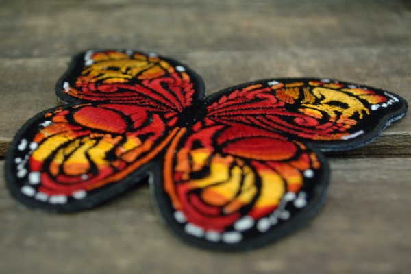 グラデーションの蝶の羽が綺麗な刺繍ワッペンです!