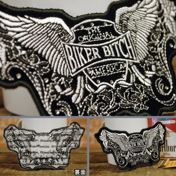 刺繍 ワッペン ◆ BIKER BITCH ラインストーン 【S】