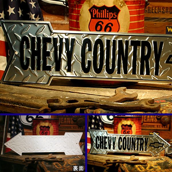 CHEVY COUNTRY 矢印型 看板 ◆ シェビー ボウタイロゴ