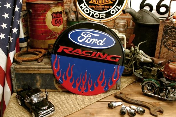 Ford RACING ロゴ 丸型 プレート ◆ フォード レーシング 炎