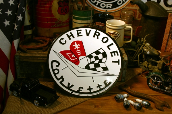 CHEVROLET Corvette 丸型 プレート ◆ コルベット ロゴ