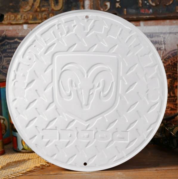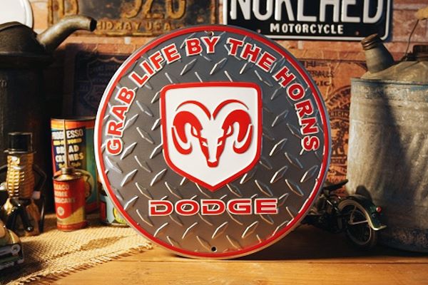 DODGE 羊ロゴ 丸型プレート ◆ ダッジ 鉄板風