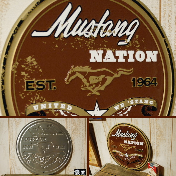 Mustang 馬ロゴ EST1964 丸型プレート ◆ フォード マスタング