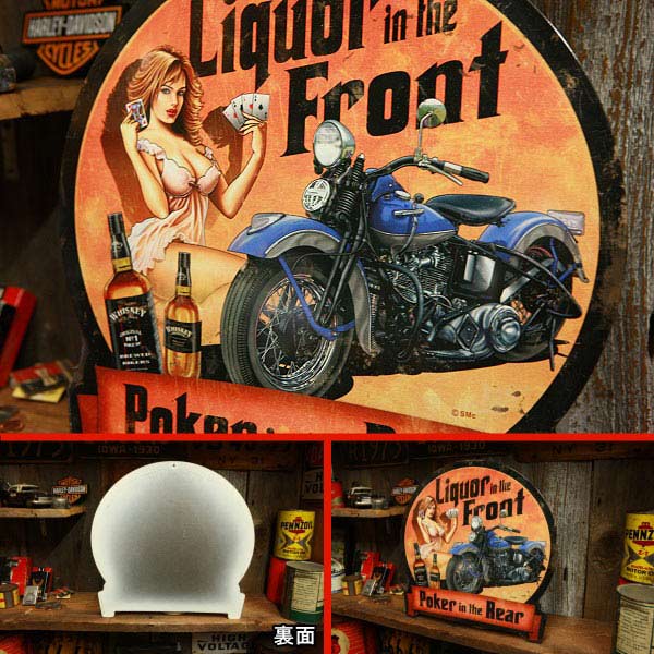 ピンナップガール & ナックルヘッド バイク イラスト ラウンド型 プレート