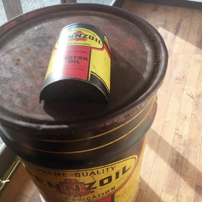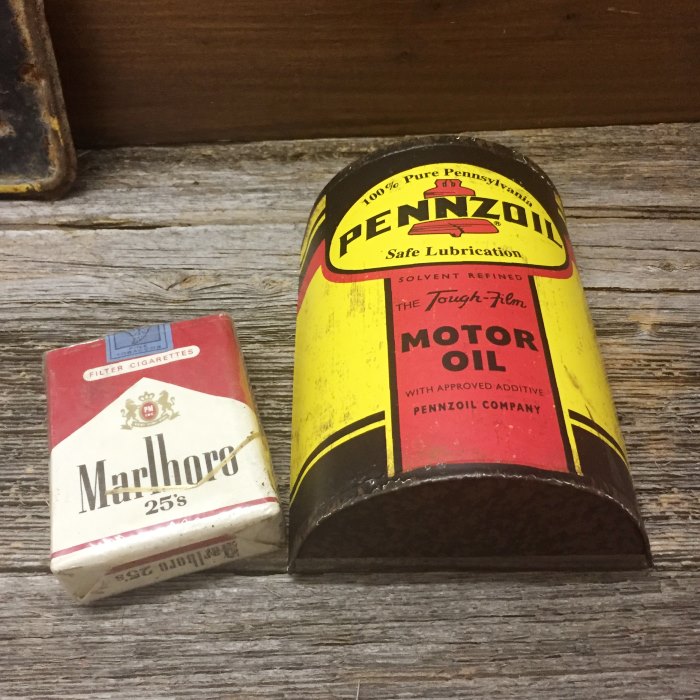 ☆円柱の缶を縦に割った感じのペンズオイル、オイル缶型プレートです。