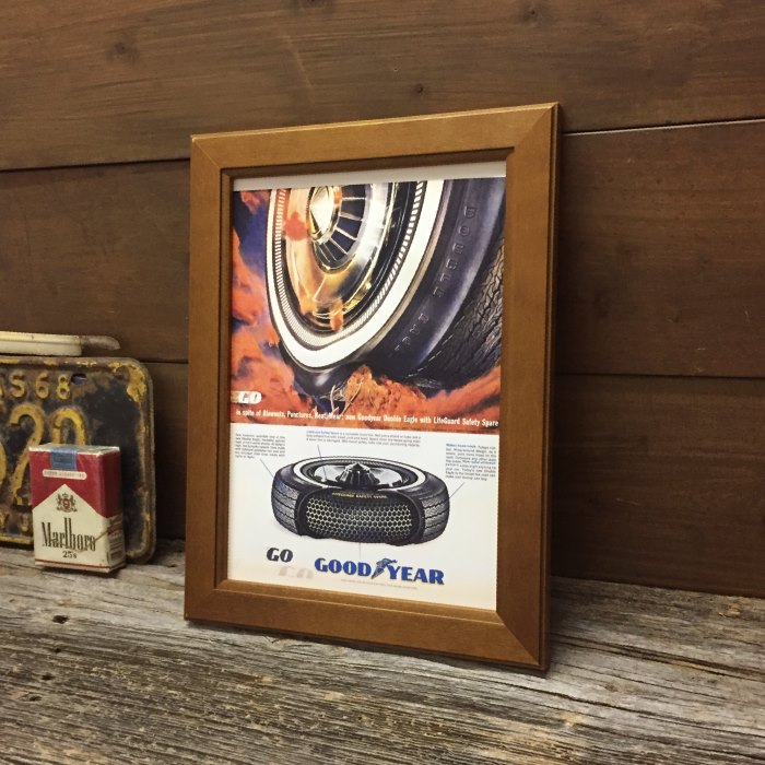 ☆アメリカの雑誌に実際に掲載された、グッドイヤータイヤの広告のリプリントとフレームのセットです。キリンとは斬新ですよね!