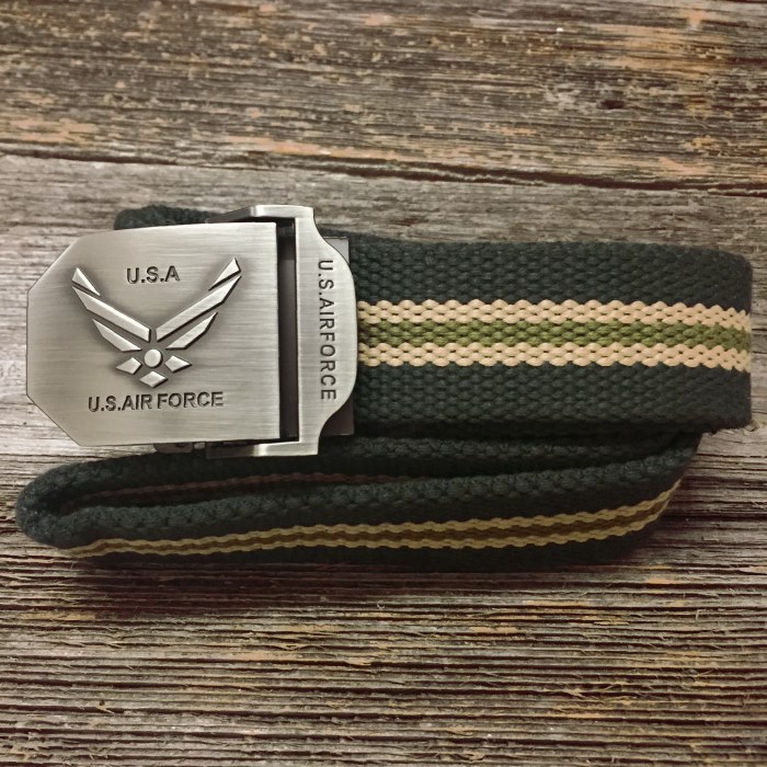 USAF 羽ロゴ バックル GI ベルト ◆ エアフォース ガチャベルト 【カーキ&ライン】