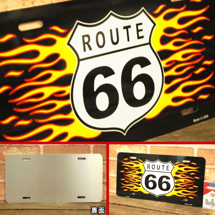 ROUTE66 燃える ロゴ プレート ◆ ルート66 ( フラットタイプ )