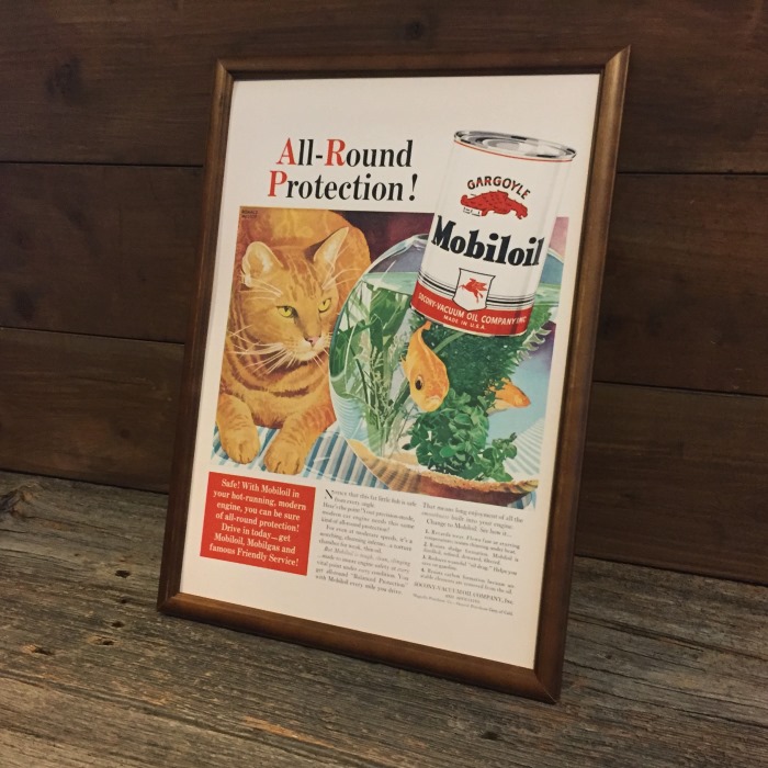 復刻ポスター B4フレーム付き ◆ Mobiloil ネコと金魚