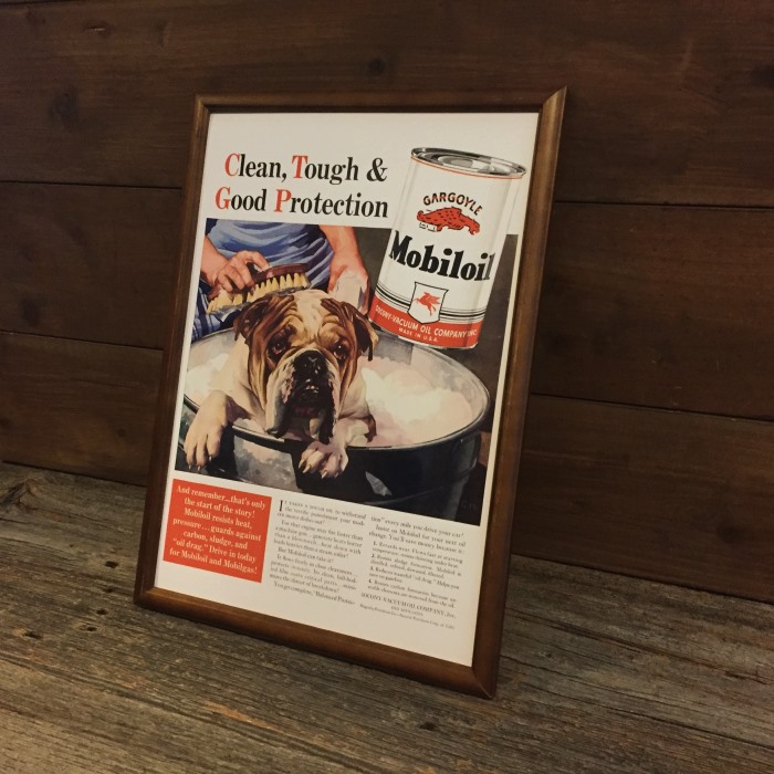 復刻ポスター B4フレーム付き ◆ Mobiloil ブルドッグのお風呂