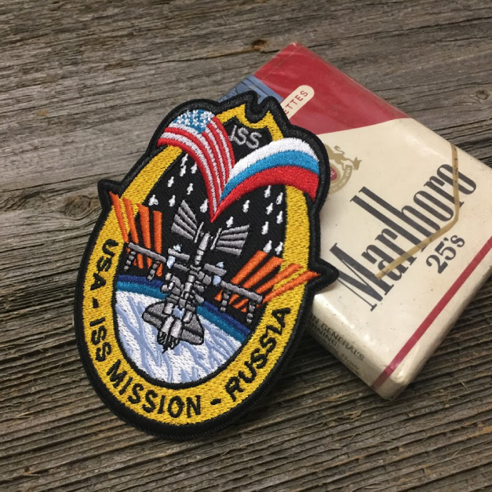 この商品には国際宇宙ステーションが刺繍されています。