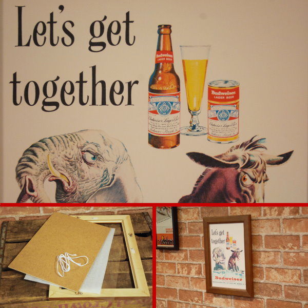 ☆当時を彷彿させる雰囲気満点なレトロミニポスターとフレームのセットです。アメリカの雑誌に実際に掲載された企業広告のリプリント!
