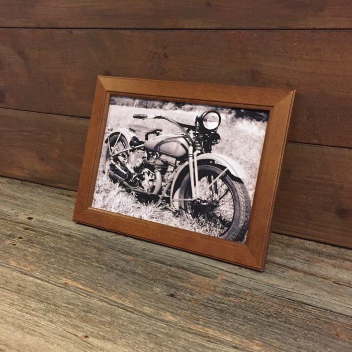レトロポスター B5フレーム入 【 モノクロハーレー / 草原 】