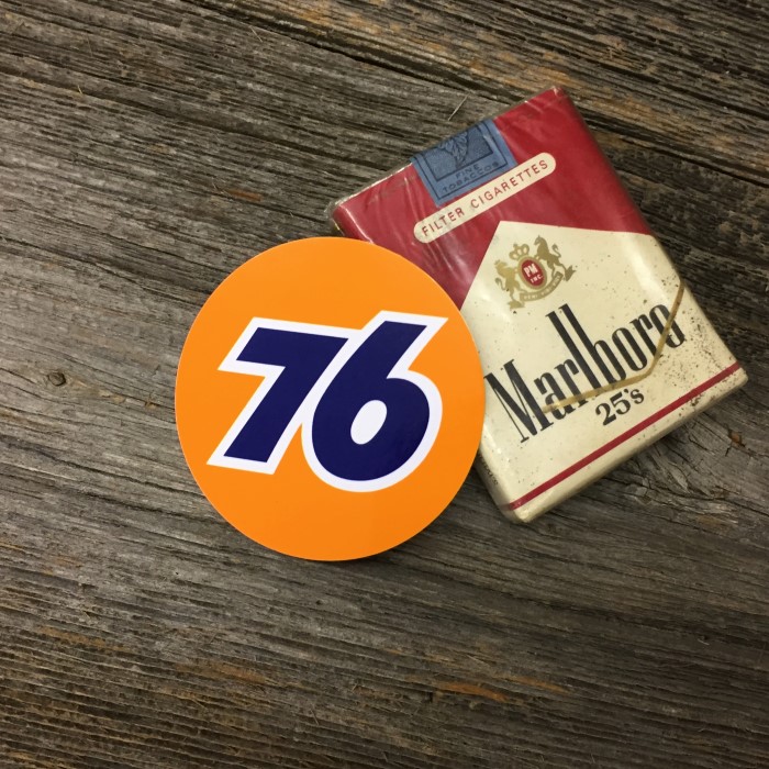 ☆丸いオレンジ地に「76」のロゴでおなじみ、オイルカンパニー(UNOCAL) のステッカーです。