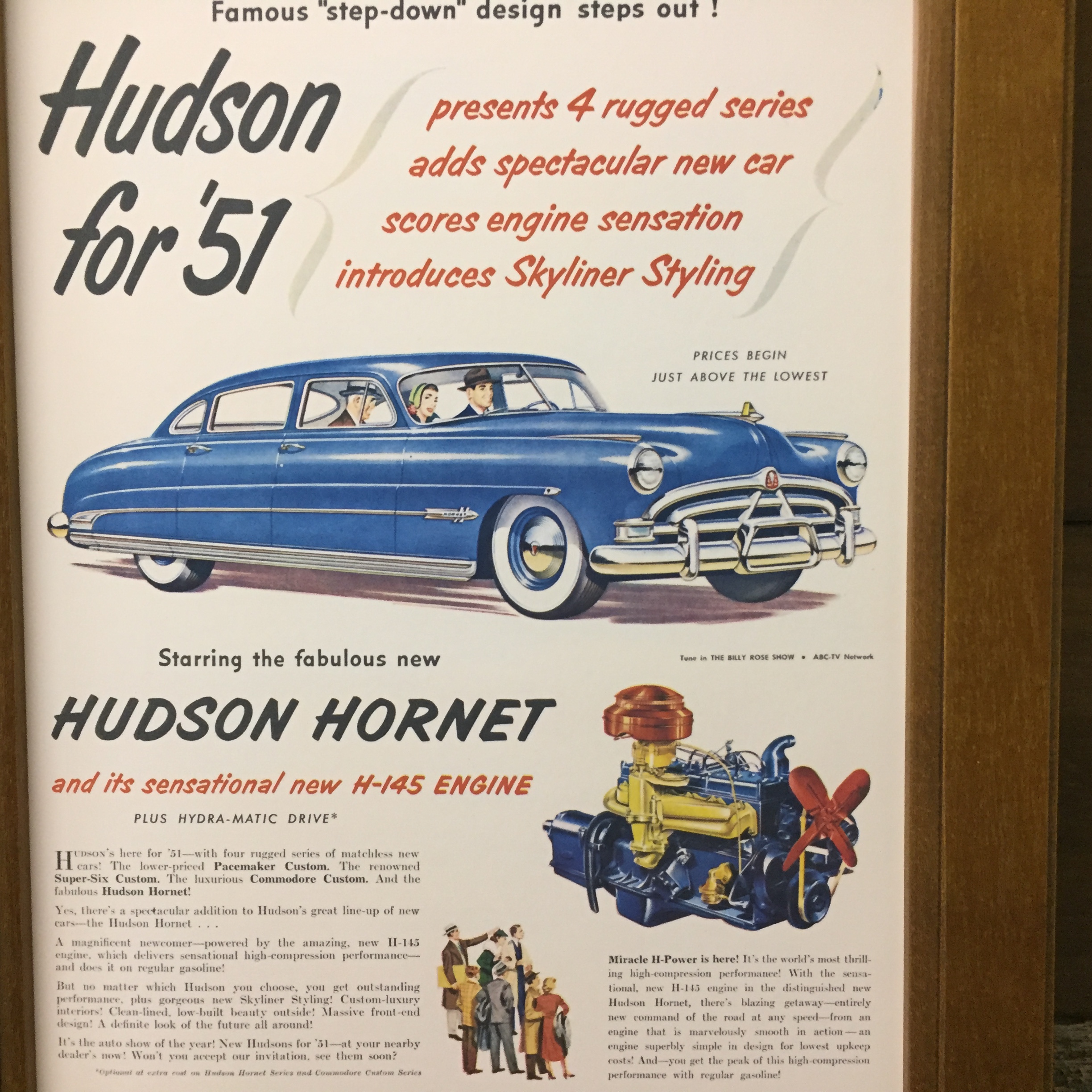 ミニポスター B5額入り 複製【 ハドソン ホーネット 】