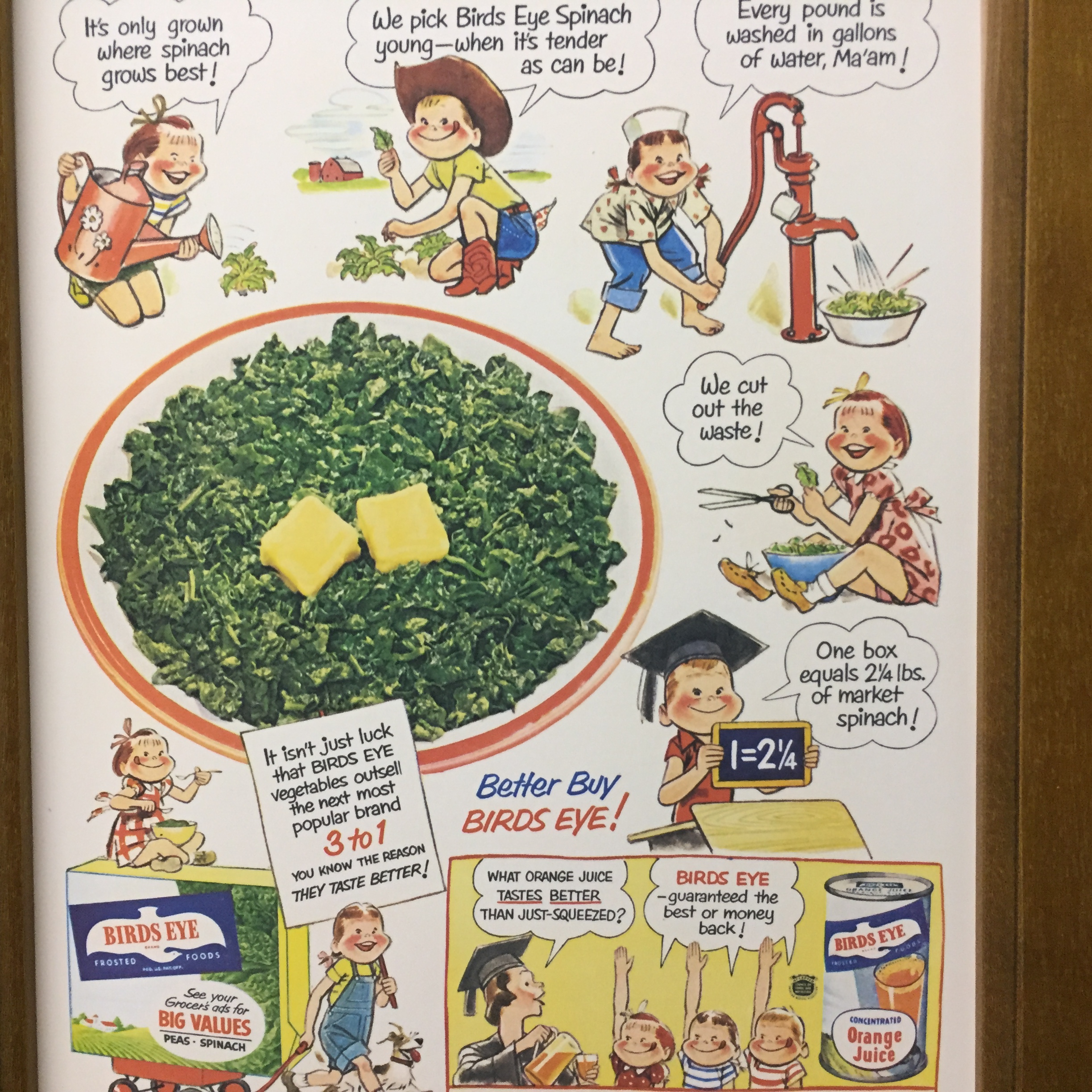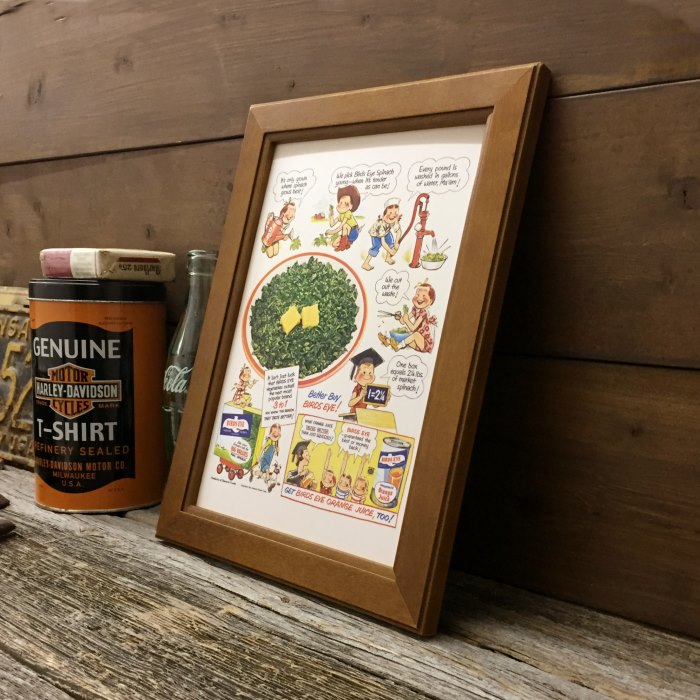 ミニポスター B5額入り 複製【 Birdseye / バードアイ ほうれん草缶詰 】
