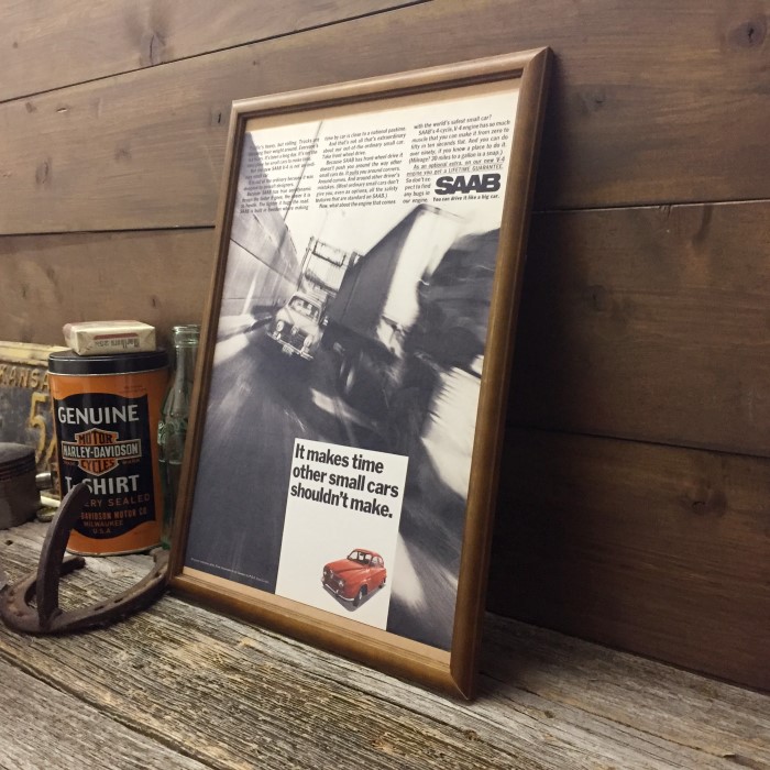 SAAB 外国車 ポスター B4額入り ◆ サーブ 複製広告 追い越し B4-369