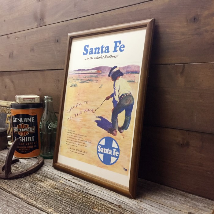 Santa Fe 鉄道 広告 ポスター B4額入り ◆ 複製 サンタフェ鉄道 落書き B4-373