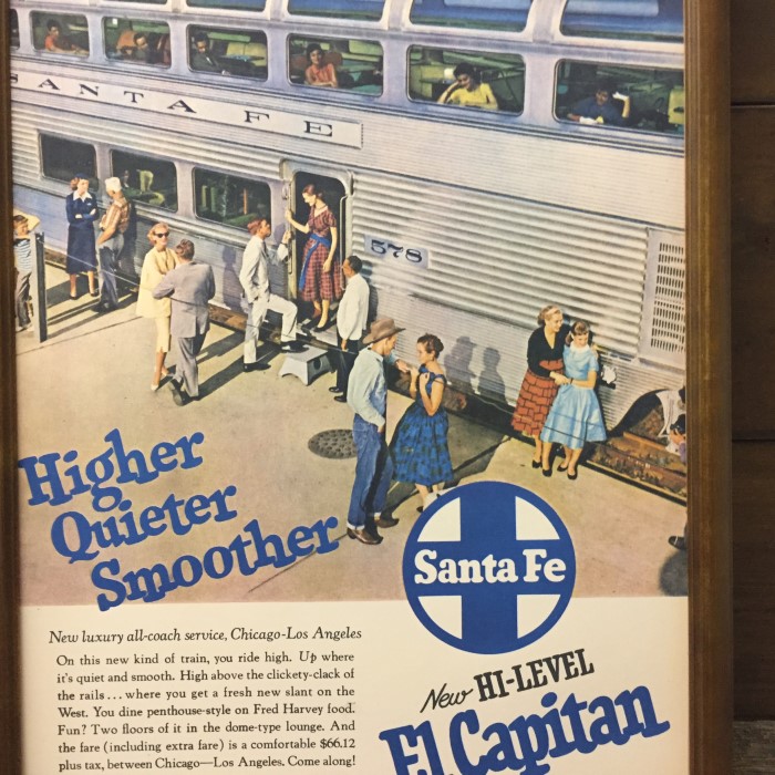 Santa Fe 鉄道 広告 ポスター B4額入り ◆ 複製 サンタフェ鉄道 乗客 B4-374