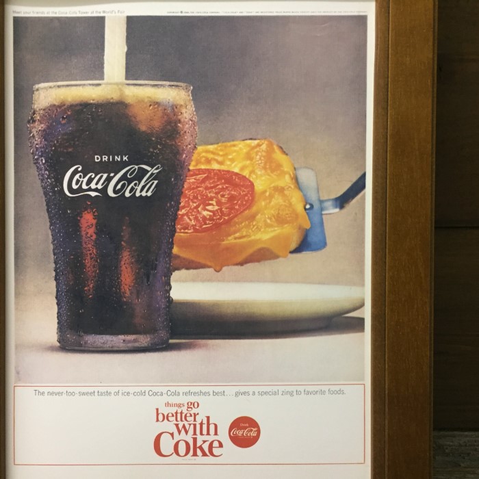 ミニポスターB5額入り【 コカコーラ / グラスコーラとピザ 】