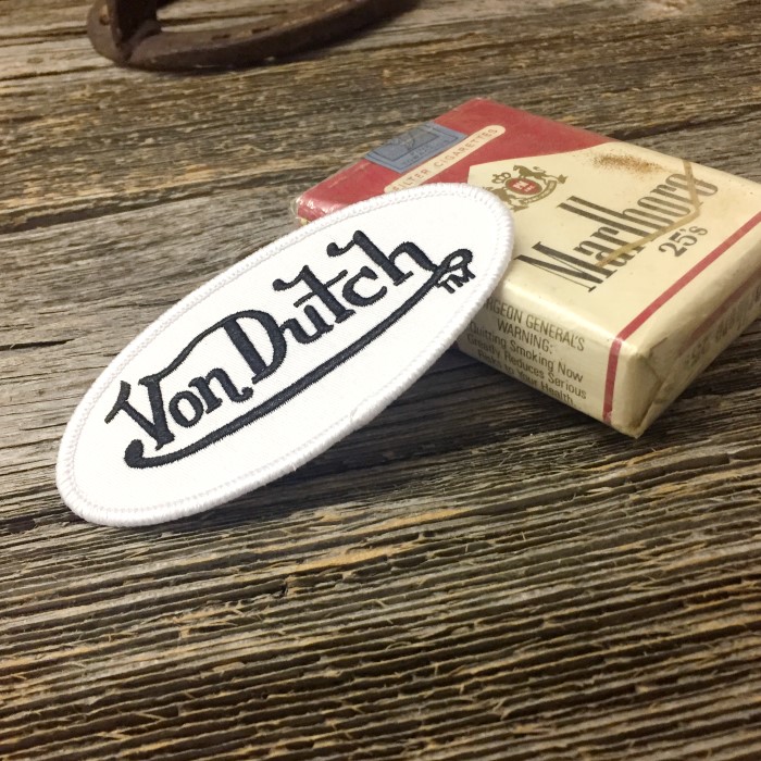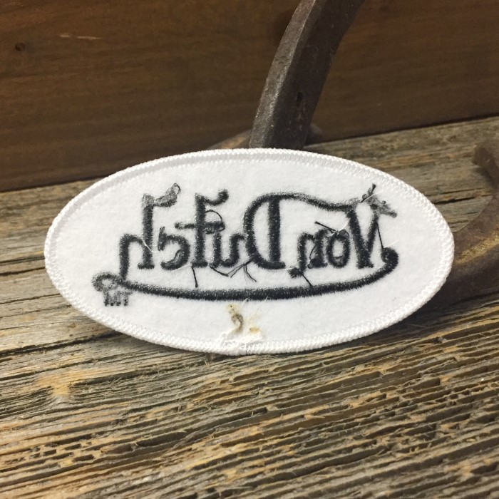 ボンダッチ 楕円形 ロゴ ワッペン ◆ Von Dutch アイロン接着対応 パッチ 白地 黒文字 CAWP081