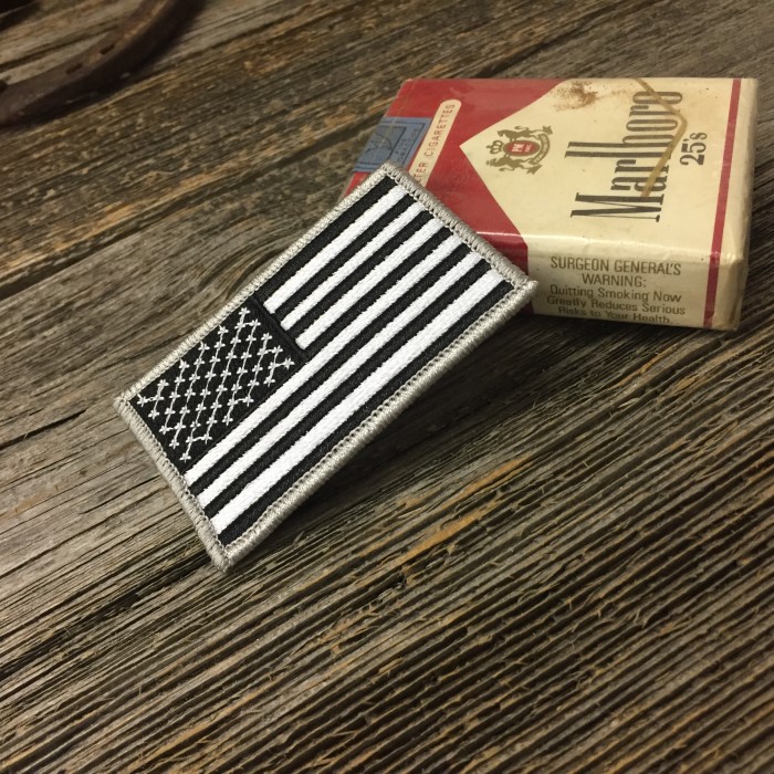 星条旗 モノクロ ワッペン ◆ 刺繍 パッチ アメリカ国旗 FLAG PATCH 白黒 銀フチ CAWP94
