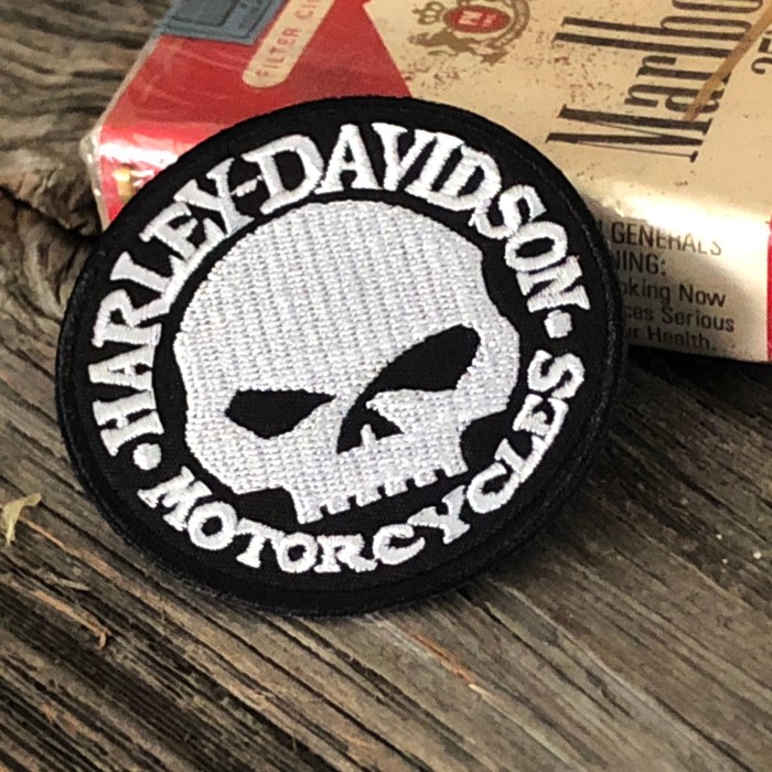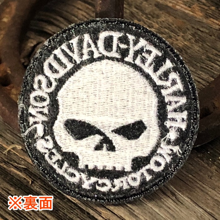 ハーレー スカル 丸型 ワッペン ◆ ウィリーG パッチ 刺繍 WILLIE G.風 モノクロ アイロン接着可能 CAWP19