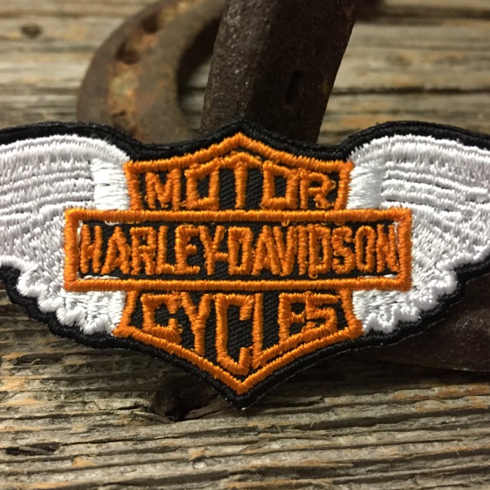 ハーレー ミニ ワッペン ウィングロゴ 刺繍 ◆ Harley HD パッチ 羽根 B&S エンブレム アイロン接着可能 CAWP34