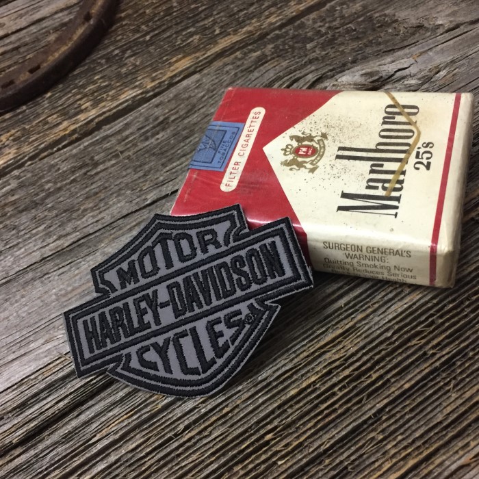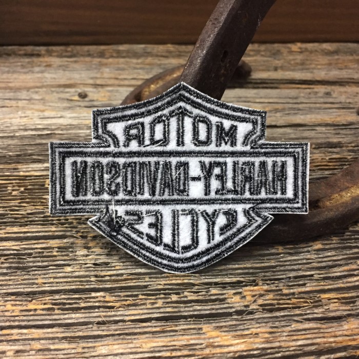 ハーレー ミニ ワッペン ロゴ 刺繍 ◆ アイロン接着可能 パッチ Harley 光を反射 グレー/ブラック 小 CAWP37