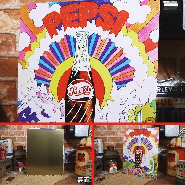☆ 1969年に発表されたペプシの広告。 John Alcornが描いたポップなイラストが復刻プレートとして登場しました。 ※取り付け用の穴があいています。 ※画像は同一商品のサンプルです。