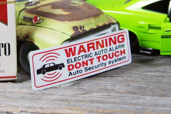 触れるとアラームが鳴り響く、自動警備システム。車の窓などに表示シールが付いている車を見かけますね。実際に機械が付いていなくても盗難防止や抑止に