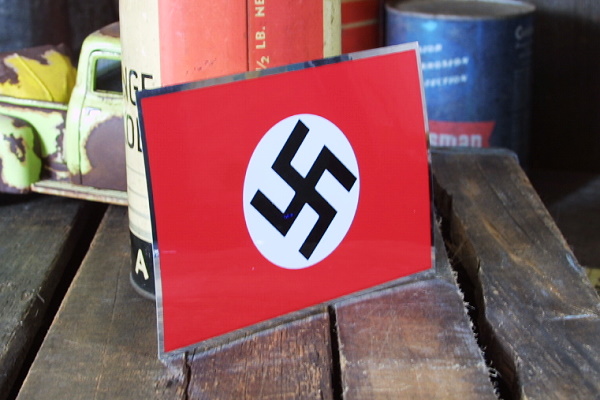 戦時中ナチスが党章や党旗につかっていた、ハーケンクロイツ (右まんじ・逆まんじ)のステッカーです。1933年にはドイツ国旗にも採用されていたとか。