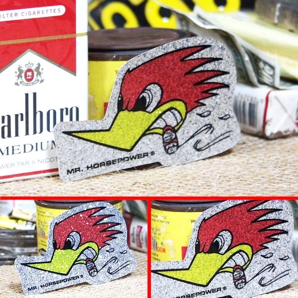 トレードマークの葉巻をくわえた赤いキツツキもラメ入り台紙でキラキラしてます!!