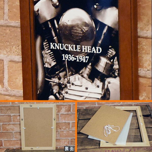 ☆ナックルヘッドエンジンの写真アートポスターと木製フレームのセットです。旧き良きアメリカの香りがするアートポスターをガレージやお部屋のインテリアに!