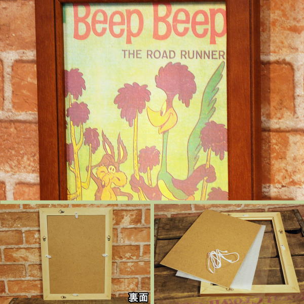 ロードランナーとその宿敵ワイリーコヨーテの広告と木製フレームのセットです。