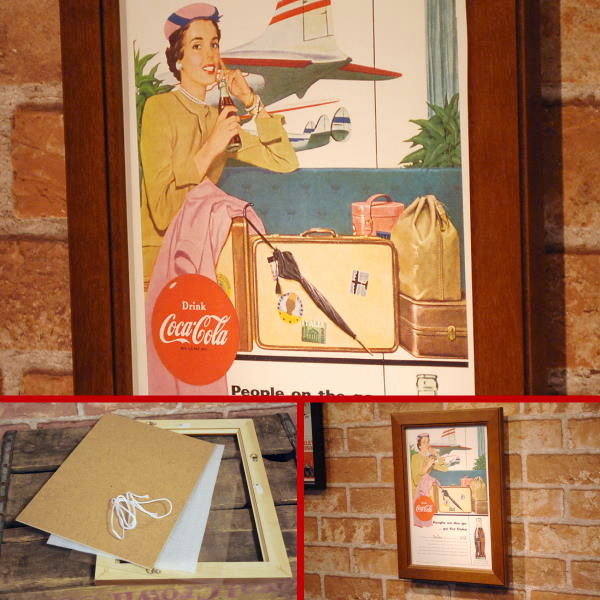 ☆アメリカの雑誌に実際に掲載された事のある、コカコーラの広告のリプリントとフレームのセットです。独特のレトロムードは写真では味わえないアート感!