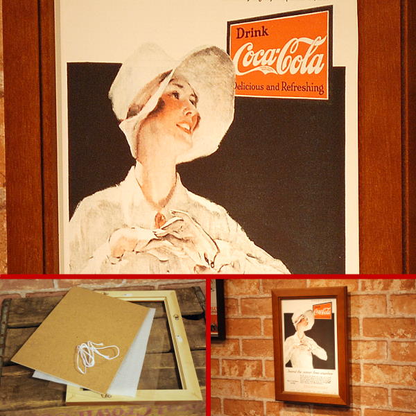 ☆アメリカの雑誌に実際に掲載された事のある、コカコーラの広告のリプリントとフレームのセットです。独特のレトロムードは写真では味わえないアート感!