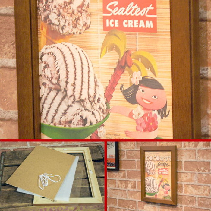 ☆当時を彷彿させる雰囲気満点なレトロミニポスターとフレームのセットです。アメリカの雑誌に実際に掲載された事のある広告のリプリント!