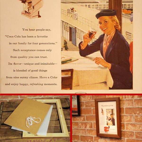 ☆アメリカの雑誌に実際に掲載された事のある、コカコーラの広告のリプリントとフレームのセットです。