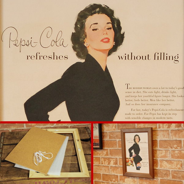 復刻ポスターとB5フレームセット 【Pepsi-cola ペプシ王冠と女性】